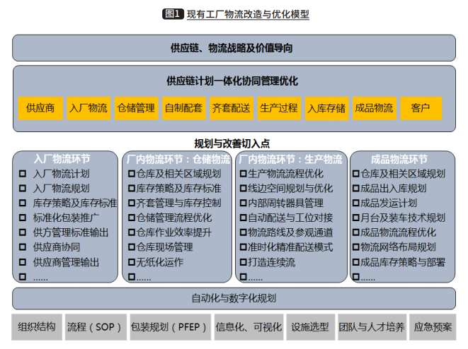 現(xiàn)有工廠的物流智能化升級是相對長期的目標,是持續(xù)改善的導向。對于大多數(shù)的現(xiàn)有制造工廠而言,當務之急是要以物流為主線,實現(xiàn)供應鏈上下游的協(xié)同運作,實現(xiàn)入廠物流、廠內(nèi)物流和成品物流的協(xié)同,以提升工廠的運營效率。在這里,工廠的物流改造需要探討的不是數(shù)字化、智能化的課題,而是理順物流管理邏輯、夯實物流基礎的過程,這是現(xiàn)有工廠通往智能化道路上的“必補之課”。